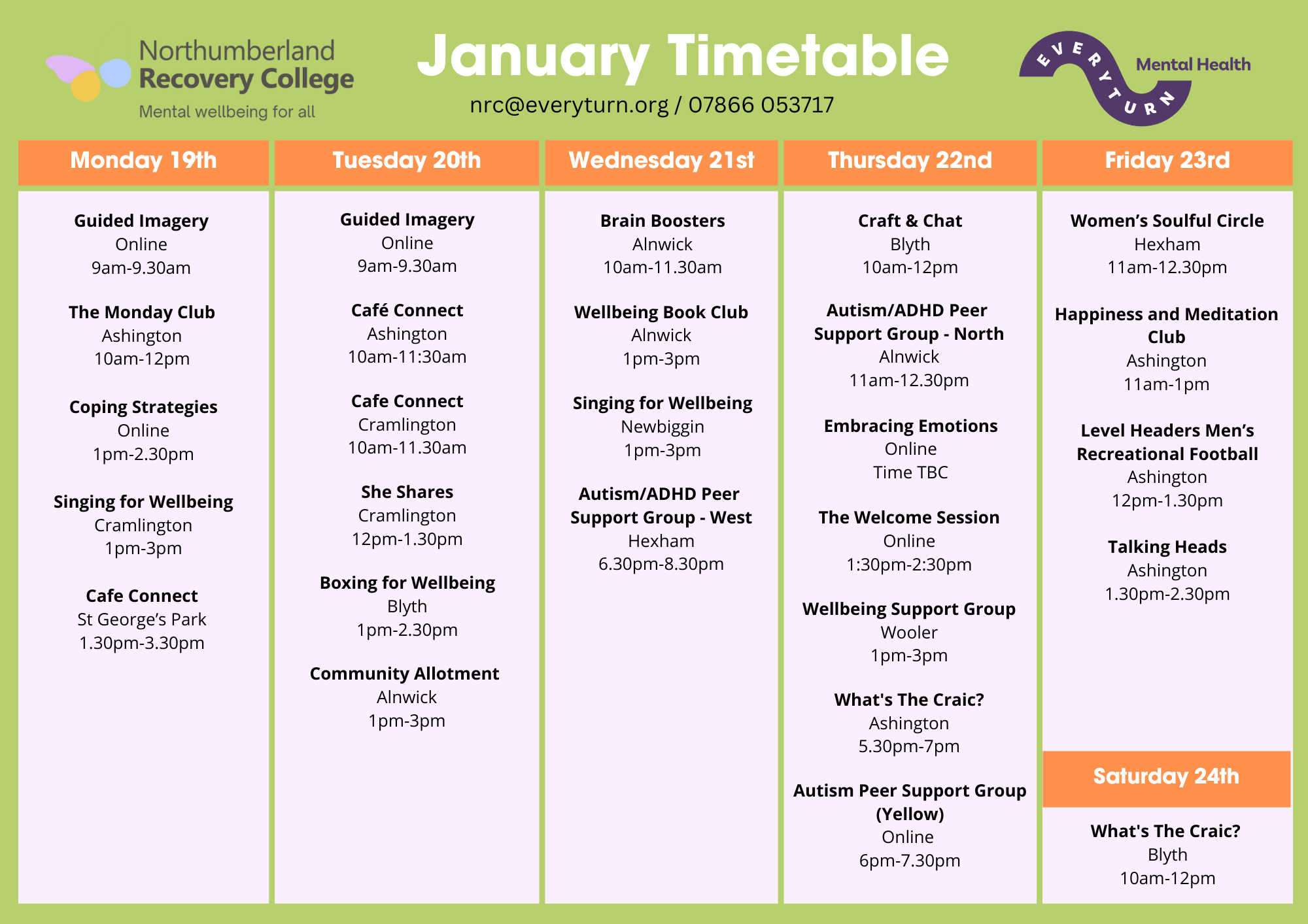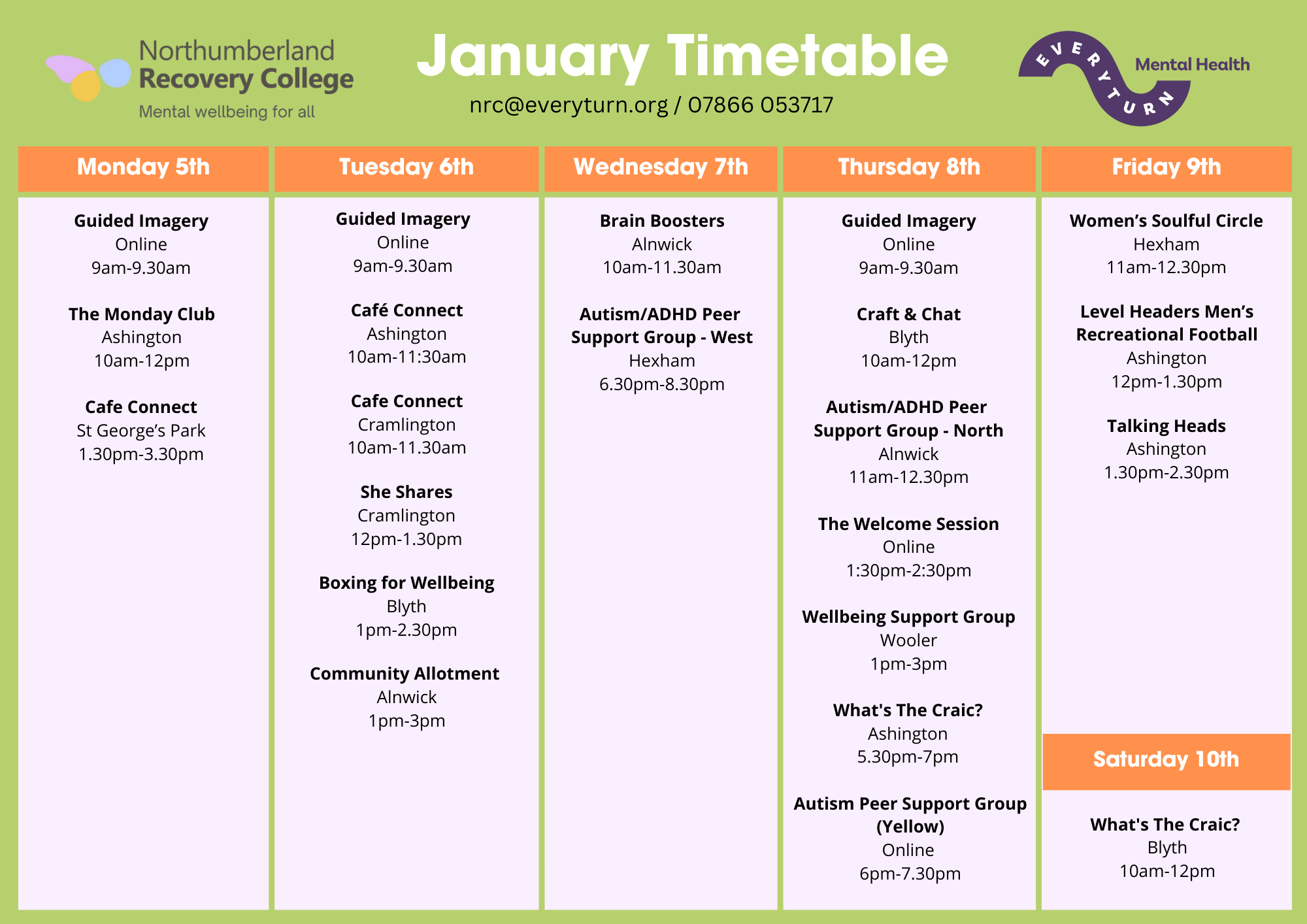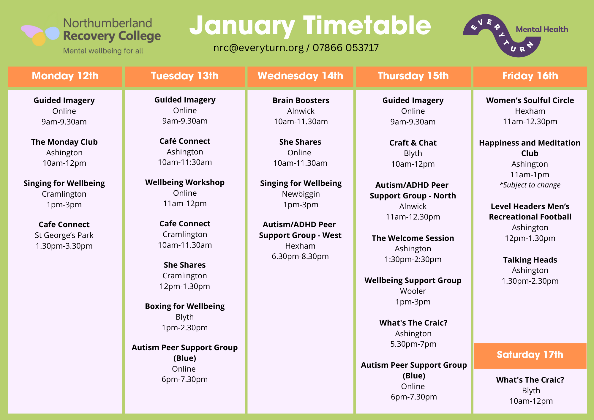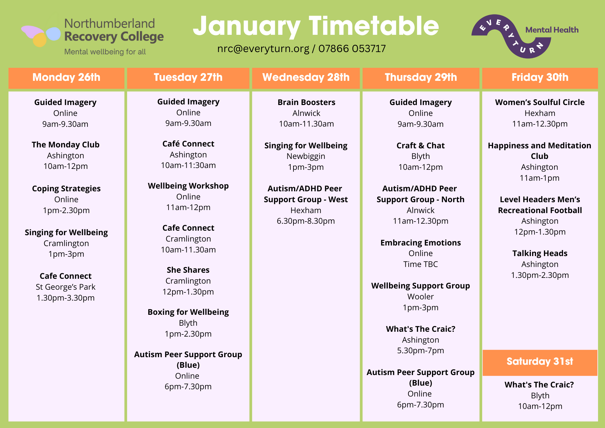 January 2026 Timetables