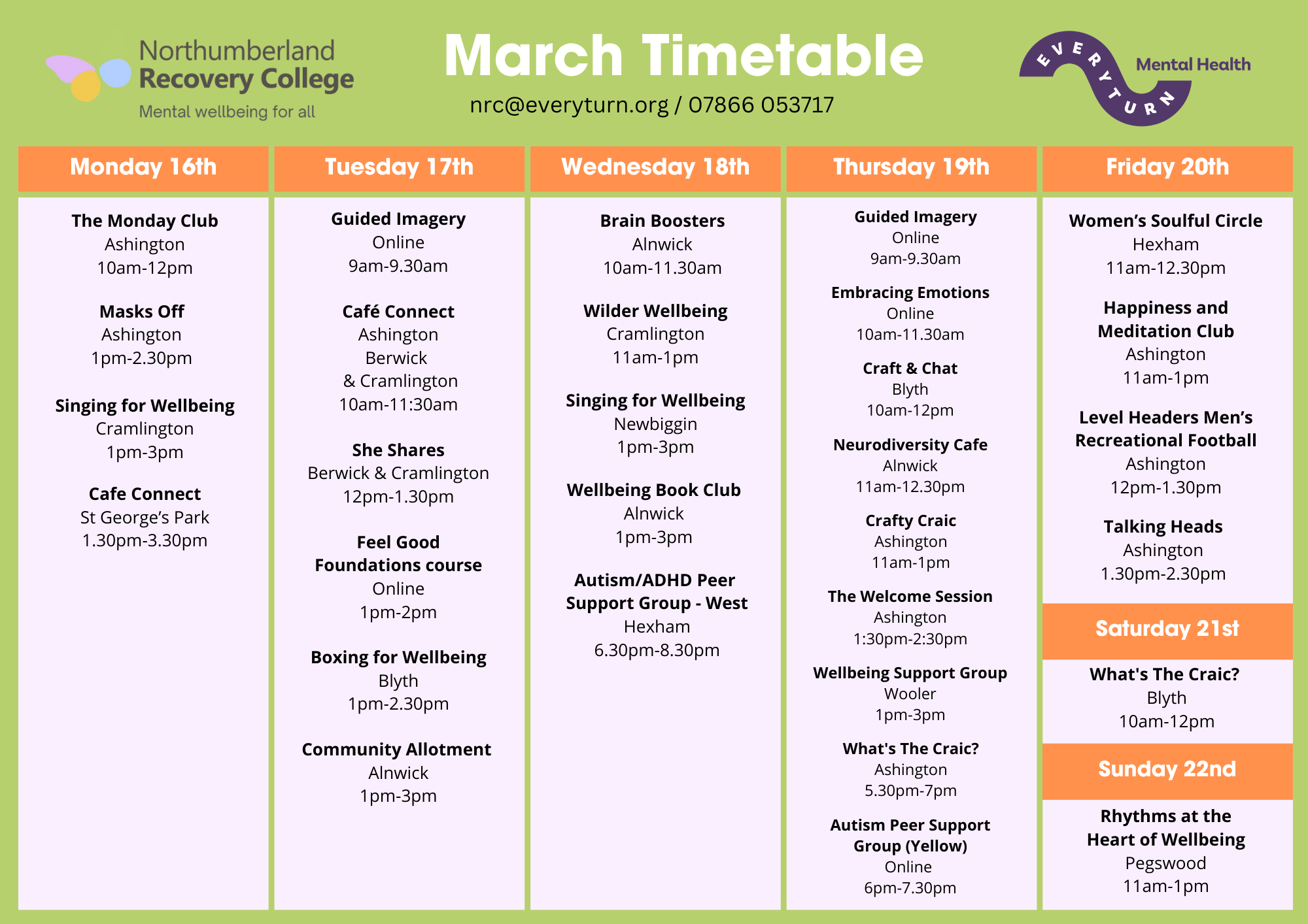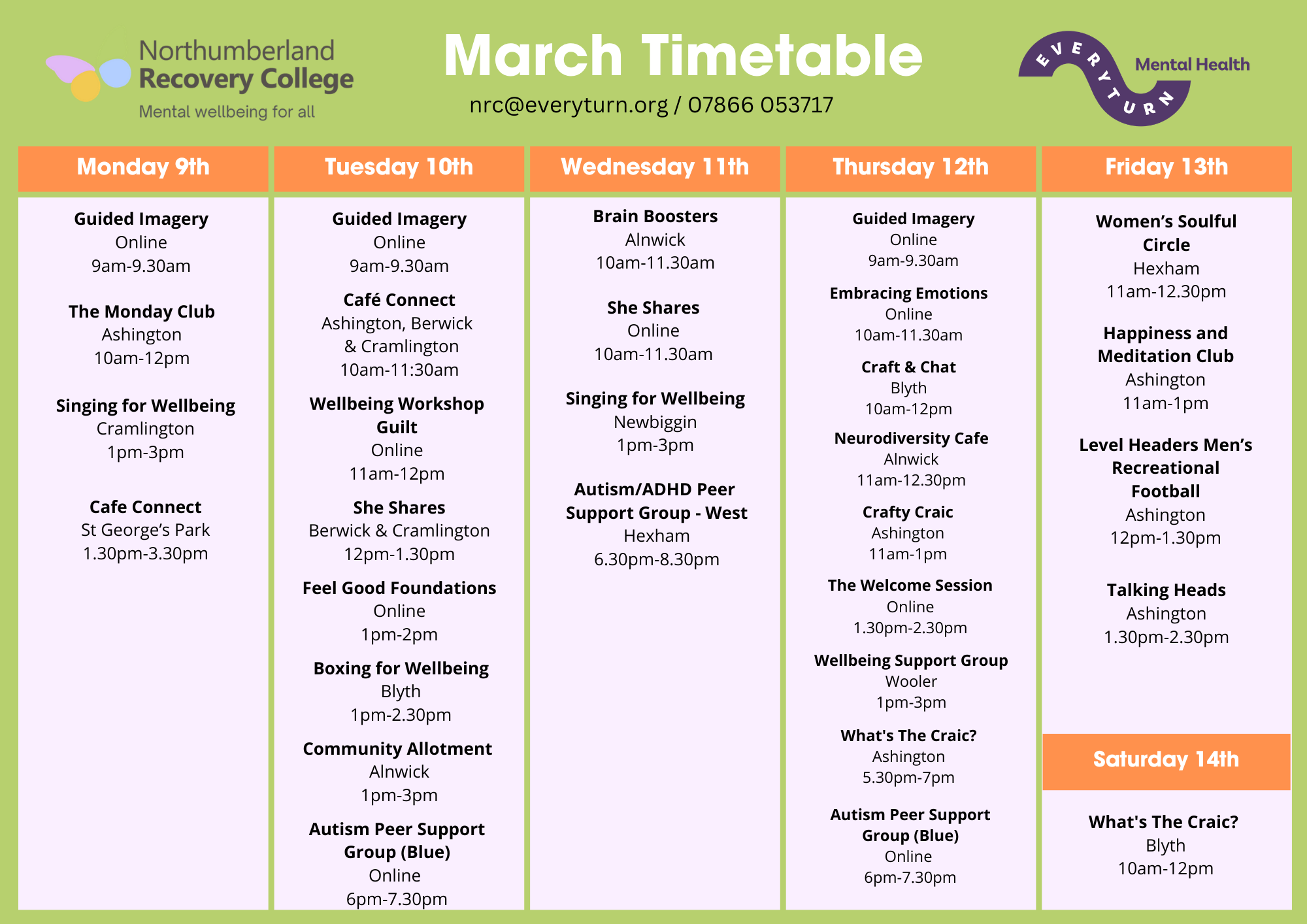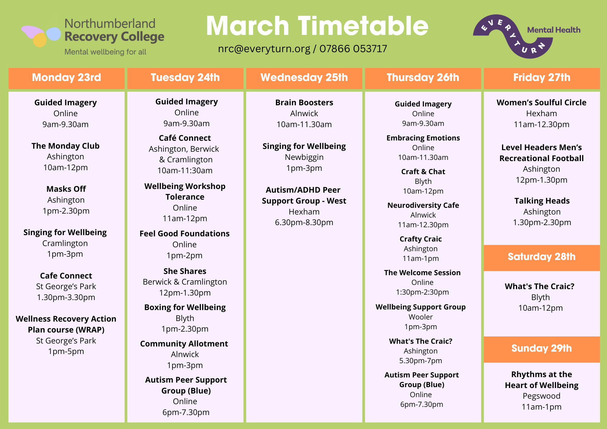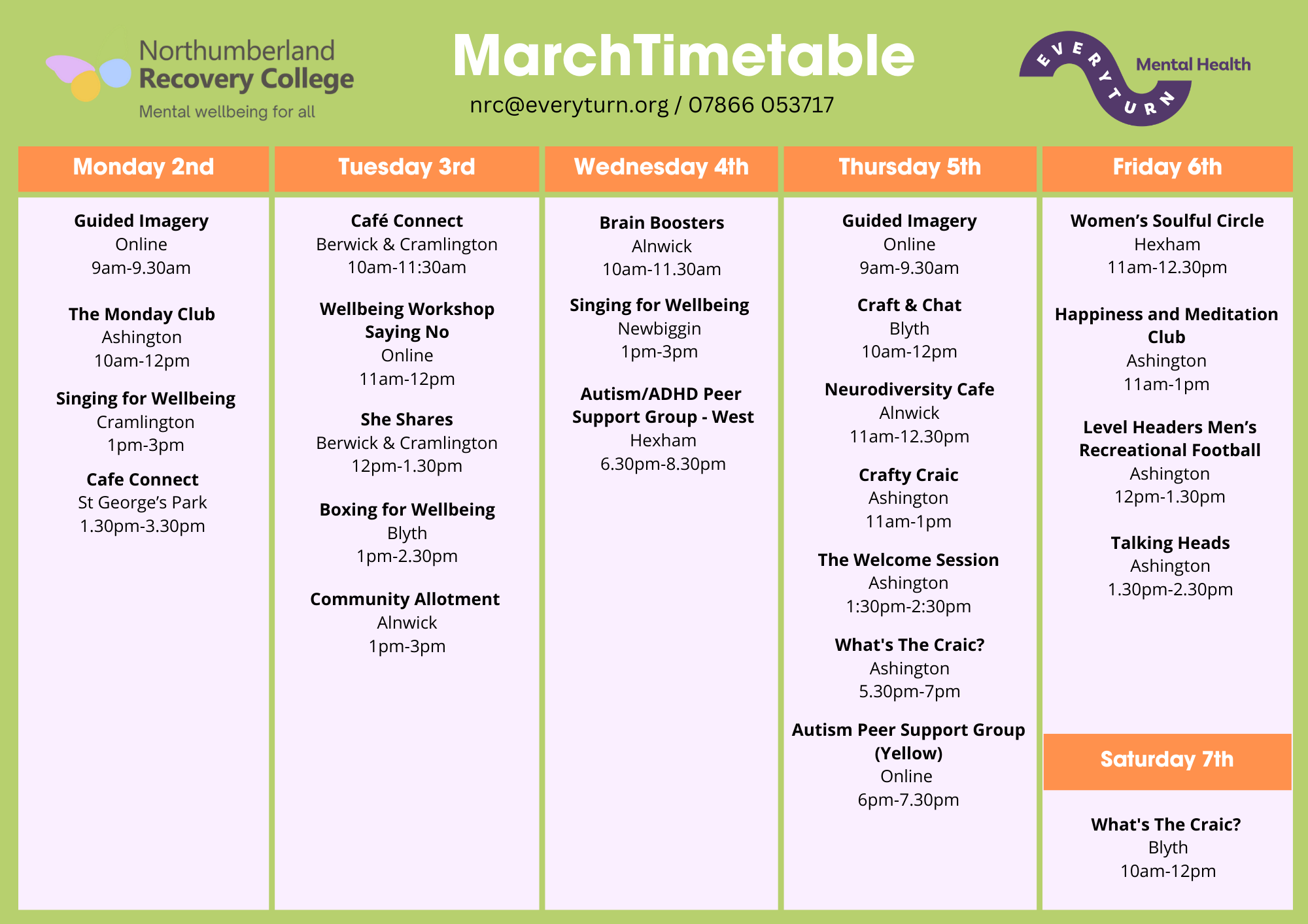 March 2026 Timetable