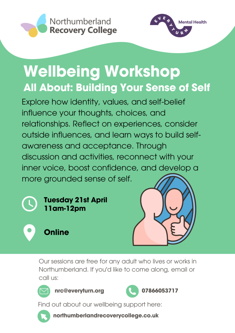 This session is free and open to anyone aged 18+ who lives or works in Northumberland. Please fill out our Enrolment Form and email nrc@everyturn.org to book your space and receive the joining link.