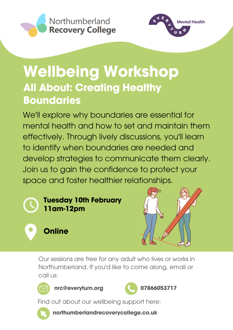 This session is free and open to anyone aged 18+ who lives or works in Northumberland. Please fill out our Enrolment Form and email nrc@everyturn.org to book your space and receive the joining link.
