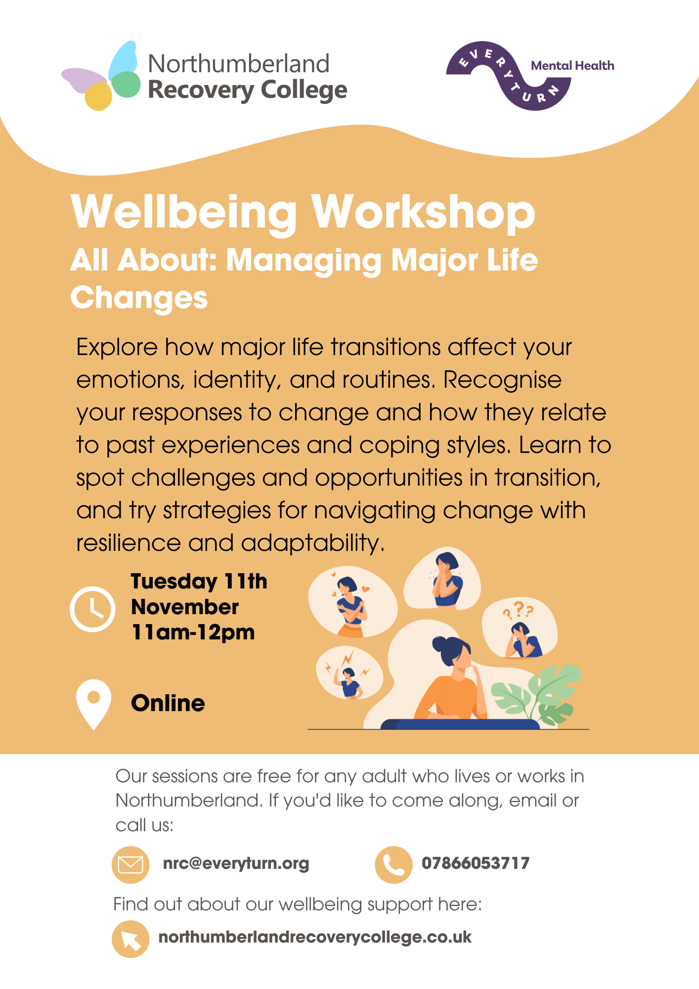 Explore how major life transitions affect your emotions, identity, and routines. Recognise your responses to change and how they relate to past experiences and coping styles. Learn to spot challenges and opportunities in transition, and try strategies for navigating change with resilience and adaptability.