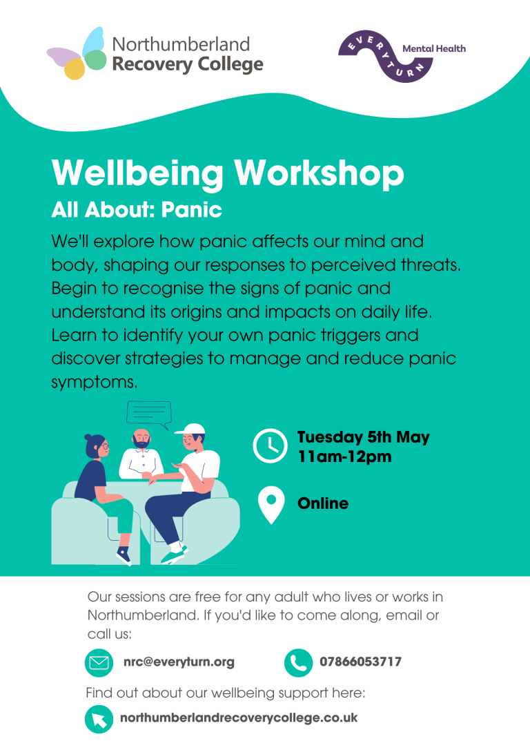 This session is free and open to anyone aged 18+ who lives or works in Northumberland. Please fill out our Enrolment Form and email nrc@everyturn.org to book your space and receive the joining link.