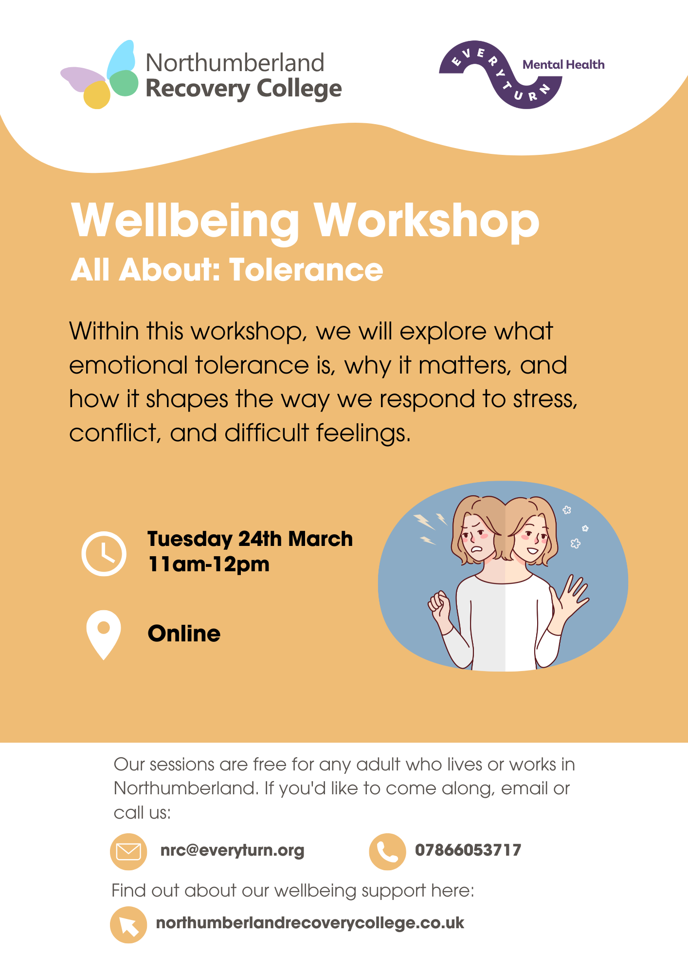 This session is free and open to anyone aged 18+ who lives or works in Northumberland. Please fill out our Enrolment Form and email nrc@everyturn.org to book your space and receive the joining link.