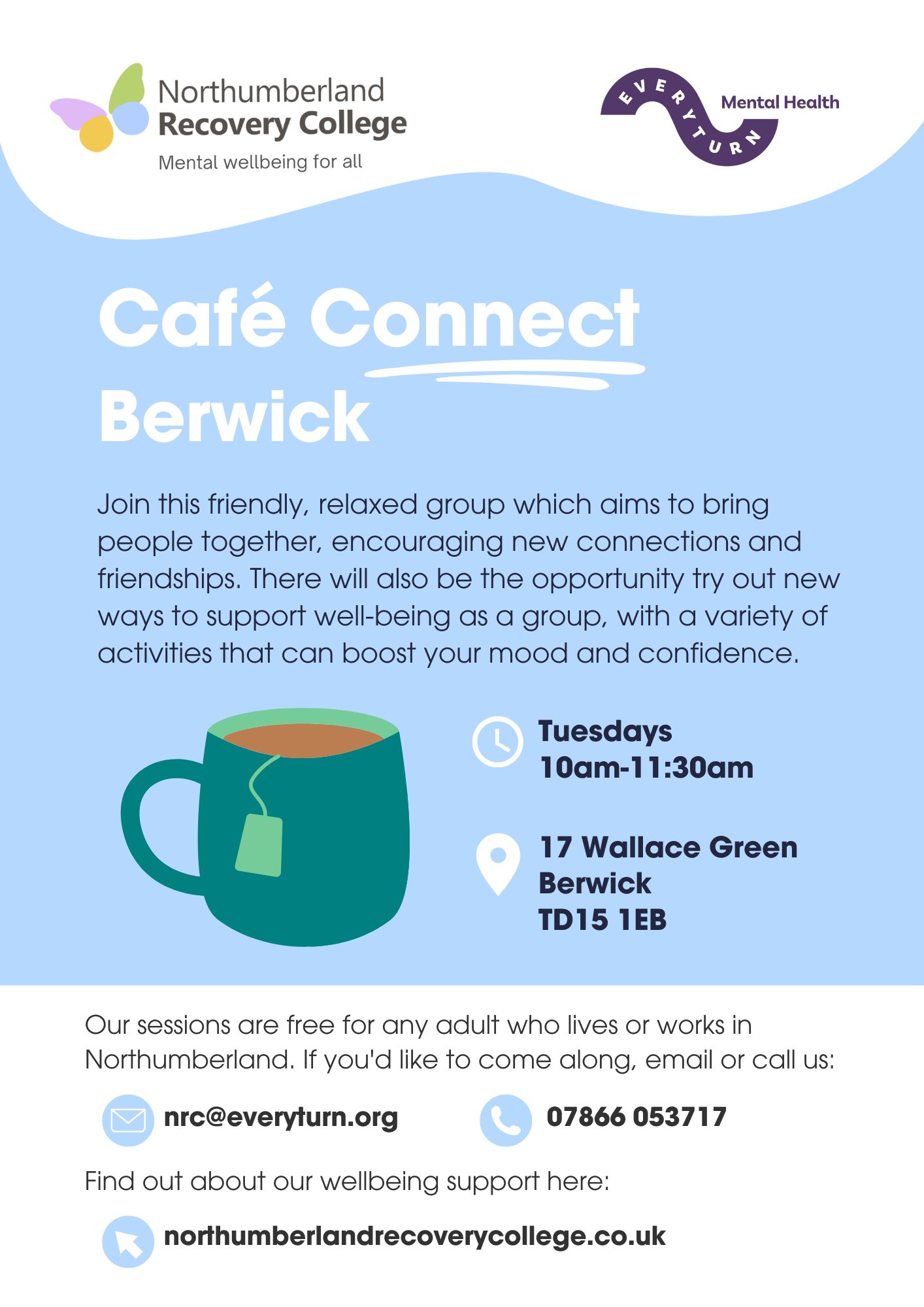 Join this friendly, informal group which aims to bring people together, encouraging new connections and friendships. By joining in with a variety of activities, you are given the chance to boost your confidence and try out new ways to support well-being as a group.