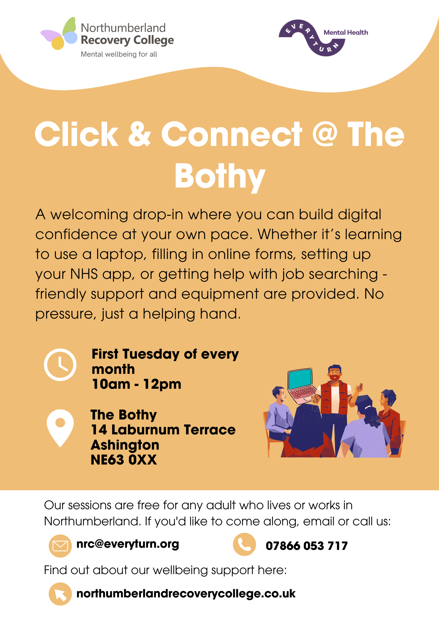 This session is free and open to anyone aged 18+ who lives or works in Northumberland. Please fill out our Enrolment Form and email nrc@everyturn.org to book your space.