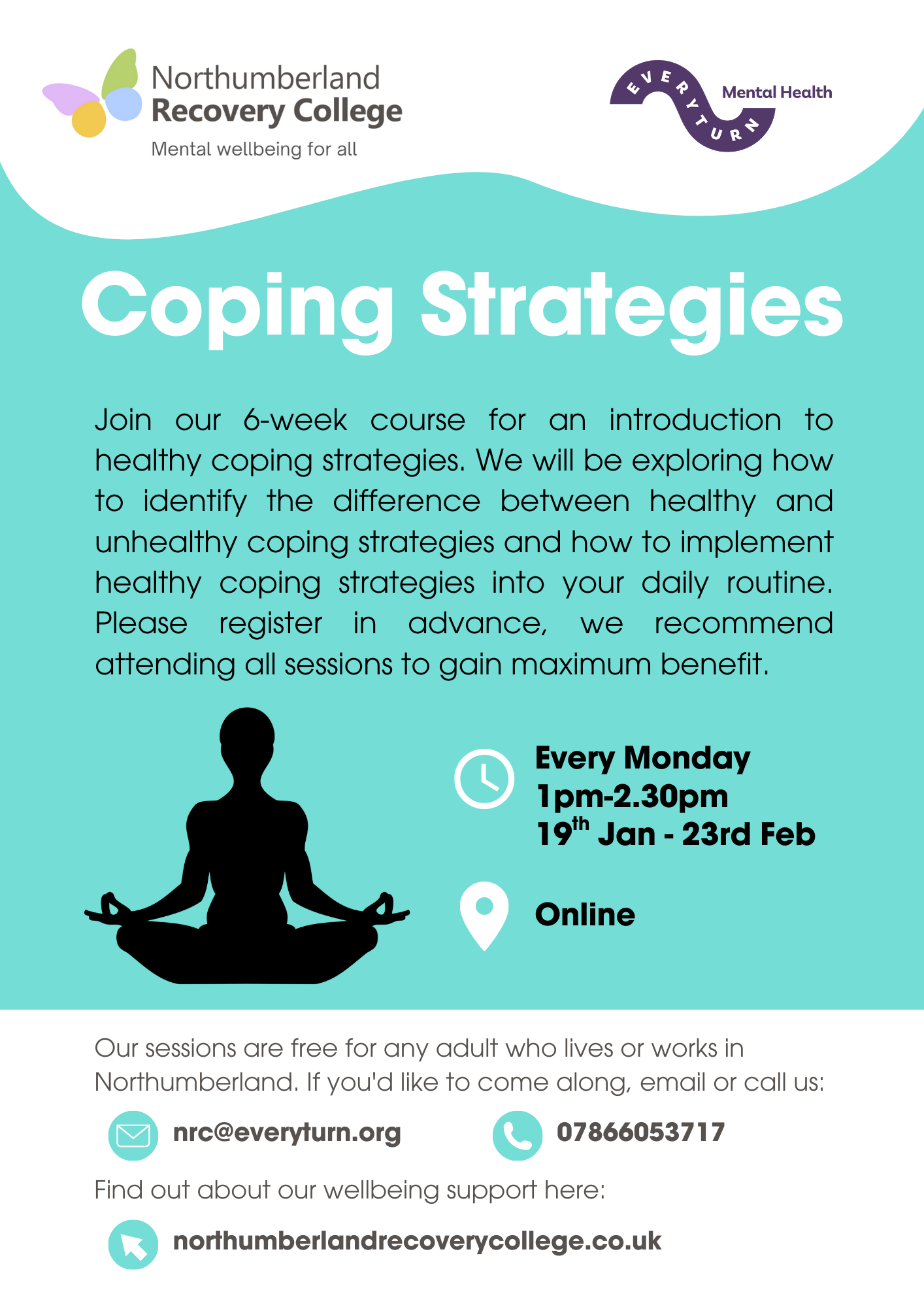This session is free and open to anyone aged 18+ who lives or works in Northumberland. Please fill out ourĀ Enrolment Form and email nrc@everyturn.org to reserve your space.