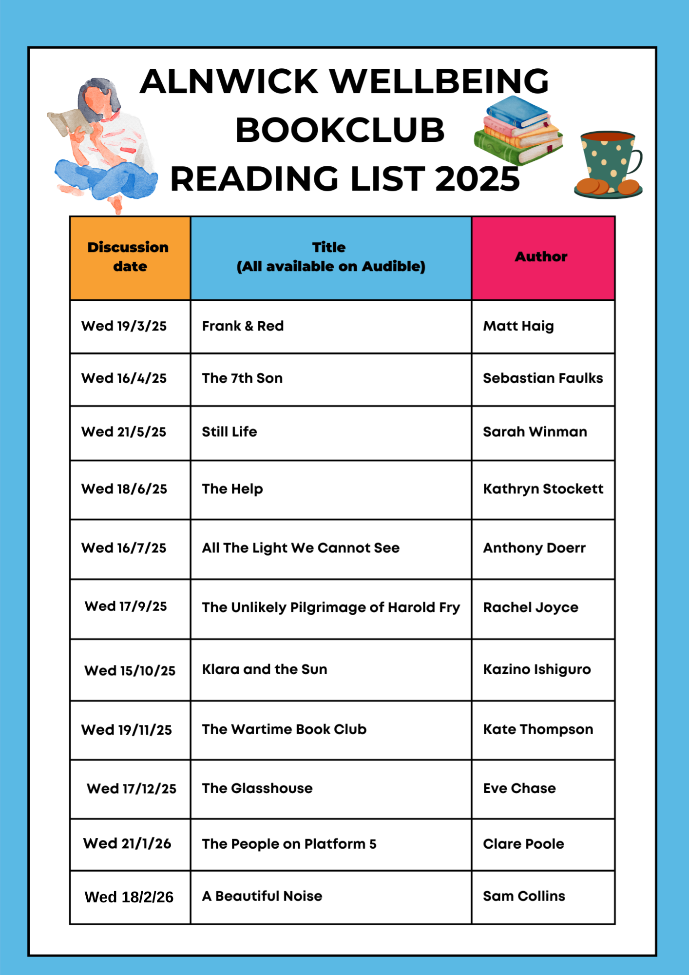The Wellbeing Book Club will focus on a new book each month. This is a great way to open up discussion on wellbeing and to connect with likeminded people in the local community. You do not need to have read the book beforehand, and all books are available on Audible.